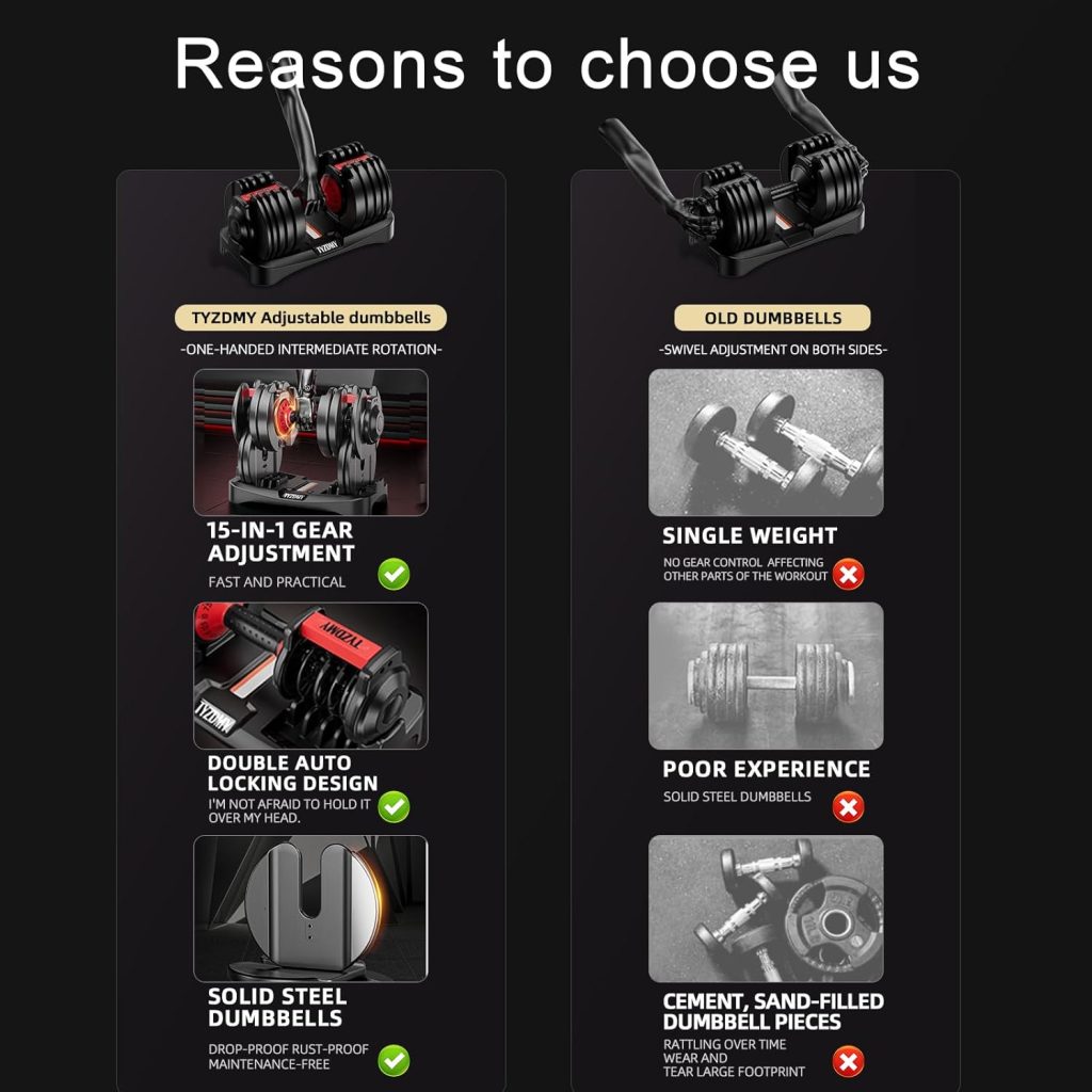 TYZDMY Adjustable Dumbbells Set of 2,Free Weights Dumbbells Set